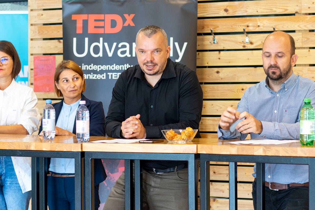 Július 10-én, csütörtökön a Hargita Business Center vállalkozói inkubátorház konferenciatermében tartott sajtótájékoztatón ismertették a szervezők az idei TEDxUdvarhely újdonságait és előadóit. Az esemény végén Berkeczi Zsoltot, a rendezvény adminisztratív hátterét biztosító Hargita Business Center igazgatóját is sikerült néhány kérdés erejéig mikrofonvégre kapnunk. Többek között arról kérdeztük, hogy lát-e olyan udvarhelyi előadókat, akik szerinte a globális TED-színpadon is megállnák a helyüket; melyik előadást várja a leginkább; és végül, de nem utolsósorban, miért éppen az lett az idei év témája, ami.