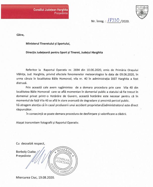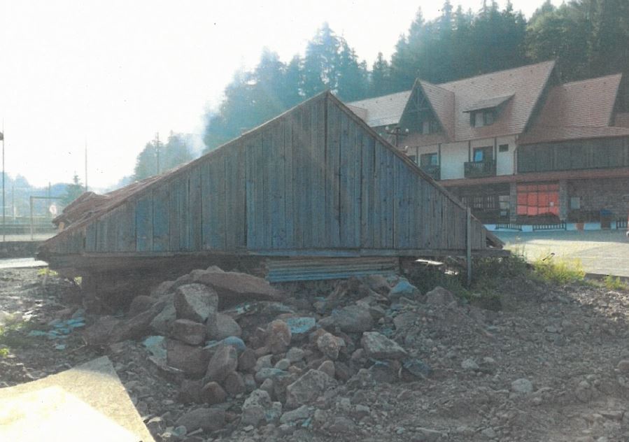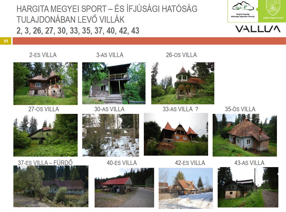 Ez pedig a fejlesztési stratégia román nyelvű teljes változatából. Látszik rajta, hogy egy egyszerű házikóról van szó. Nem képvisel bármilyen különleges építészeti értéket, nem műemlék, csak egy egyszerű régimódi faházikó. Ami, a fejlesztési terv felirata alapján, a Hargita Megyei Sport- és Ifjúsági Hatóság (továbbiakban HMSIH) tulajdonában áll.