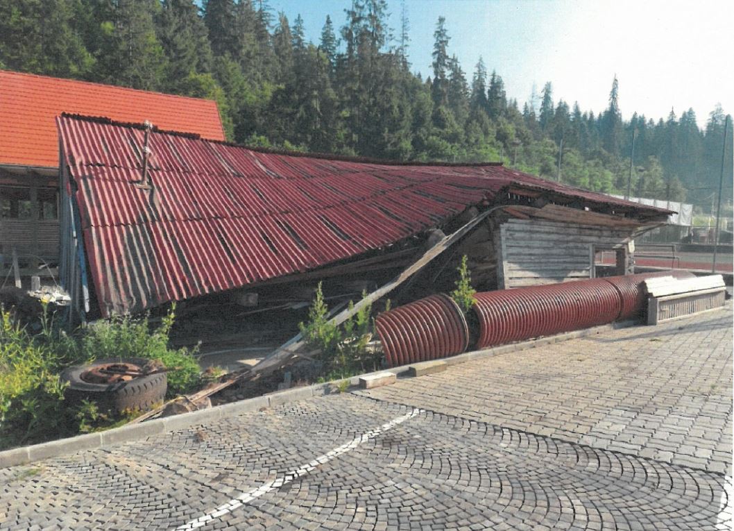 A fenti, 2021 tavaszán készült képen az épület már teljesen a földön fekszik. Vajon, mivel sikerült ilyen hamar elérni, hogy teljesen összeomoljon?