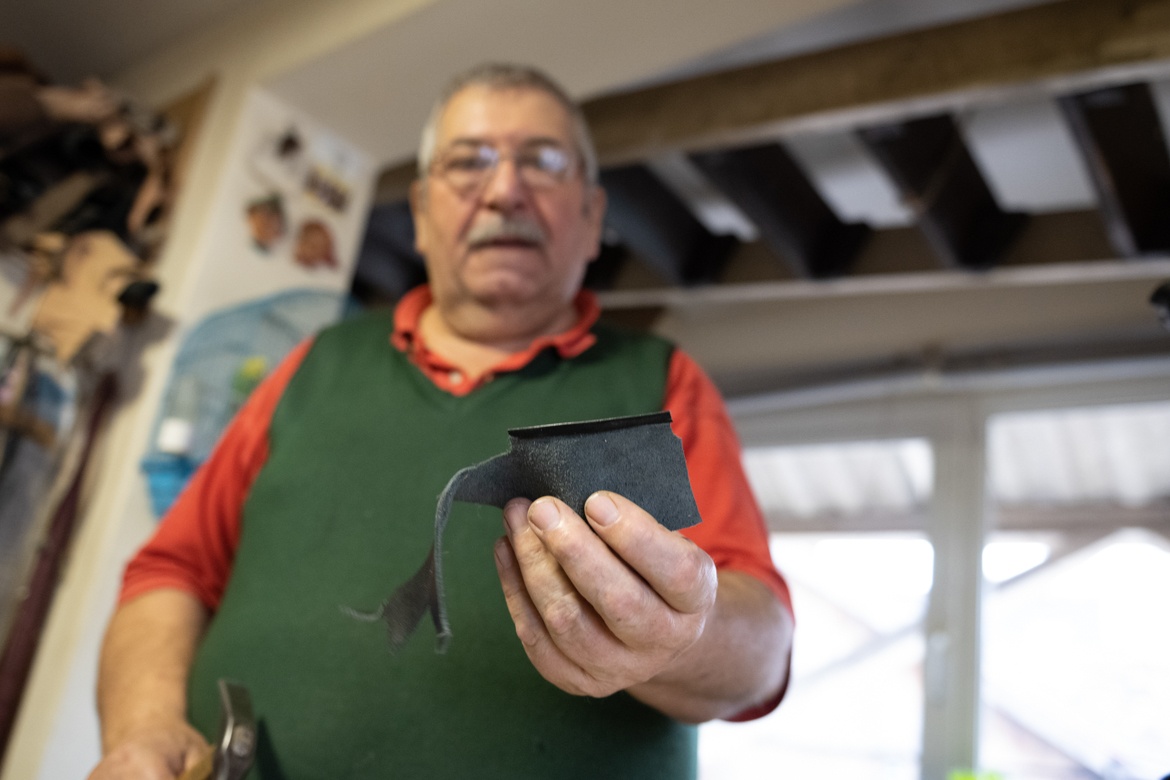 Konrád János, nyugdíjas cipészmester udvarhelyi műhelyében mutatta meg, hogyan készül el egy ortopéd cipő.