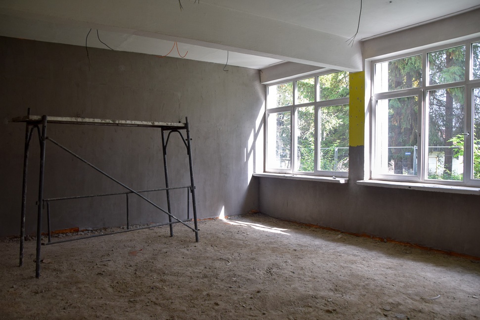 Létezik egy ütemterv is, amelyet már kért, de még nem kapott meg az intézményvezető október 12-én, amikor körbevezet a főépület A szárnyában, amely egy építőtelepre hasonlít, és amelynek néhány osztálytermébe is bekukkantunk.