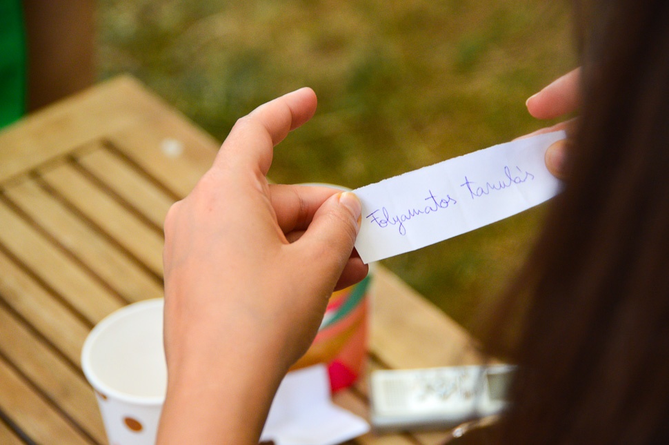 – A szöveg egy határozott kép – jelenti ki Kata – akár telefonon, akár könyvben olvasod, nem te irányítod az olvasói élményt. Minden ember más képet lát belőle, más szavak ugranak ki a számára, de ugyanúgy, minden újraolvasáskor is más képet ad a szöveg. Ezért is jó újraolvasni kedvenc szövegeket, mert mindig másképp tudnak „visszaütni” – teszi hozzá Kata, majd azt tanácsolja a közönségnek, olvassanak el többször szövegeket és ragadják meg a bennük lévő élményt, tegyék sajátjukká valamilyen módon.