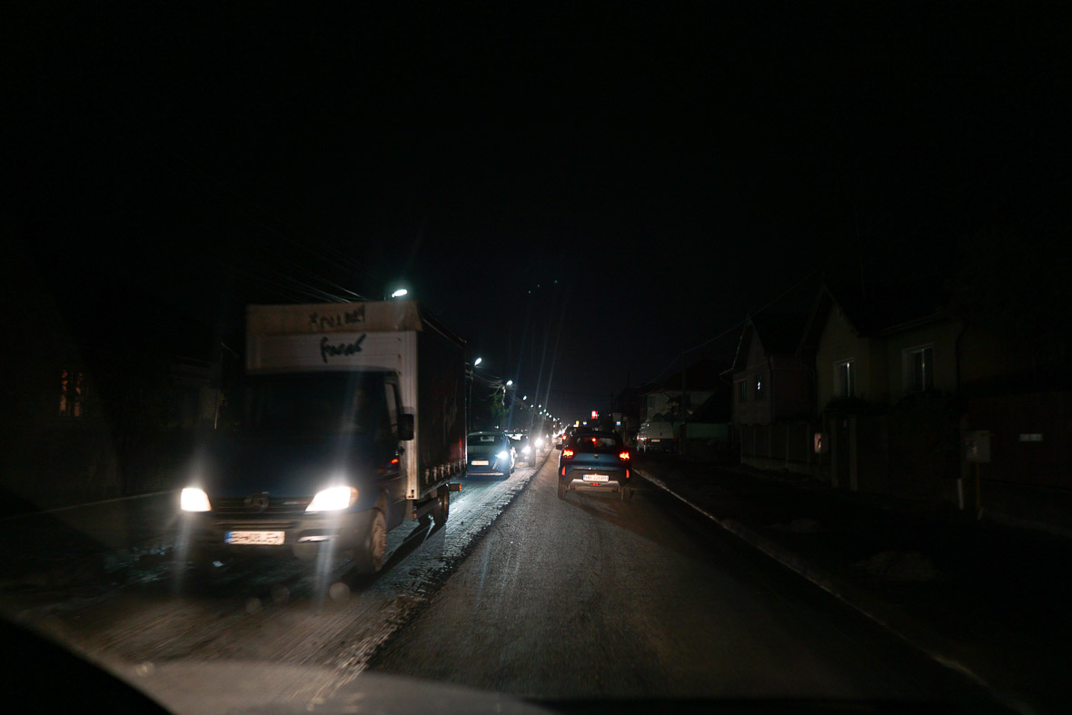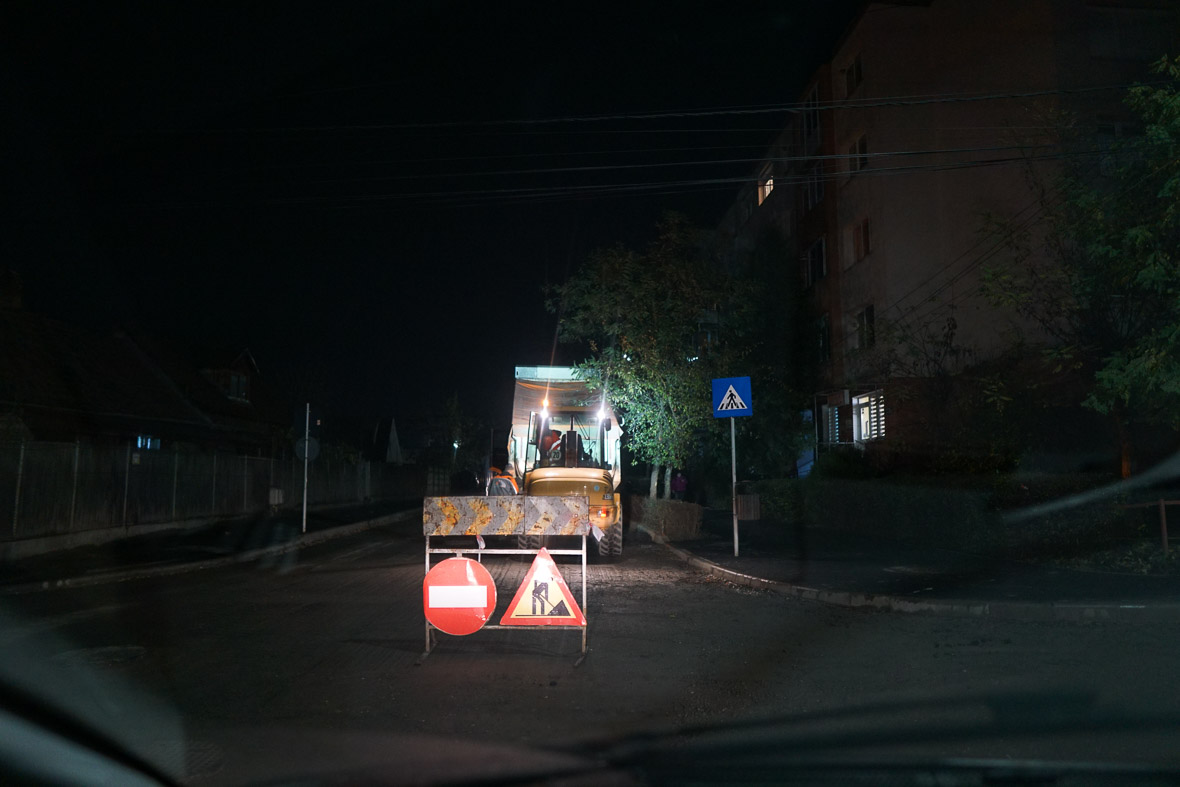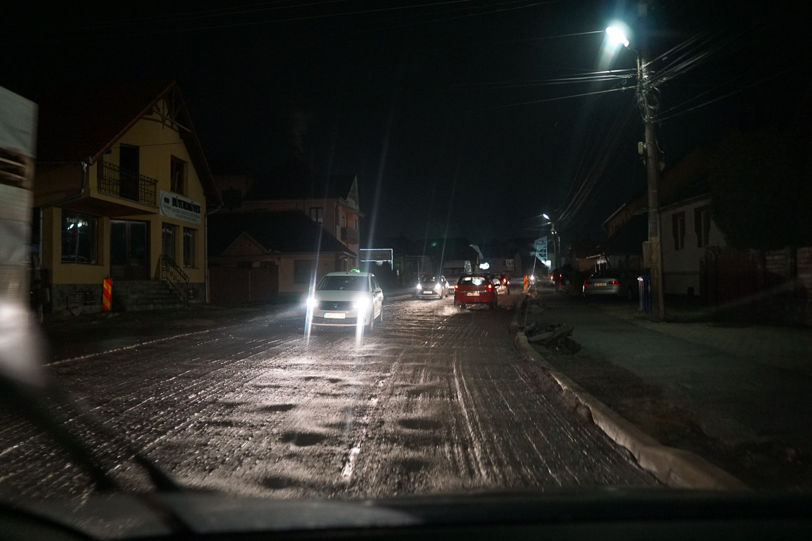Valahogy kiverekedjük magunkat a Bethlen negyedből, elindulunk a Bethlenfalvi úton. Az esőben a szembejövő autósor fényszórói szembecsapnak, félvakon kerülgetjük a felmart aszfaltból zátonyként kiálló szigeteket.