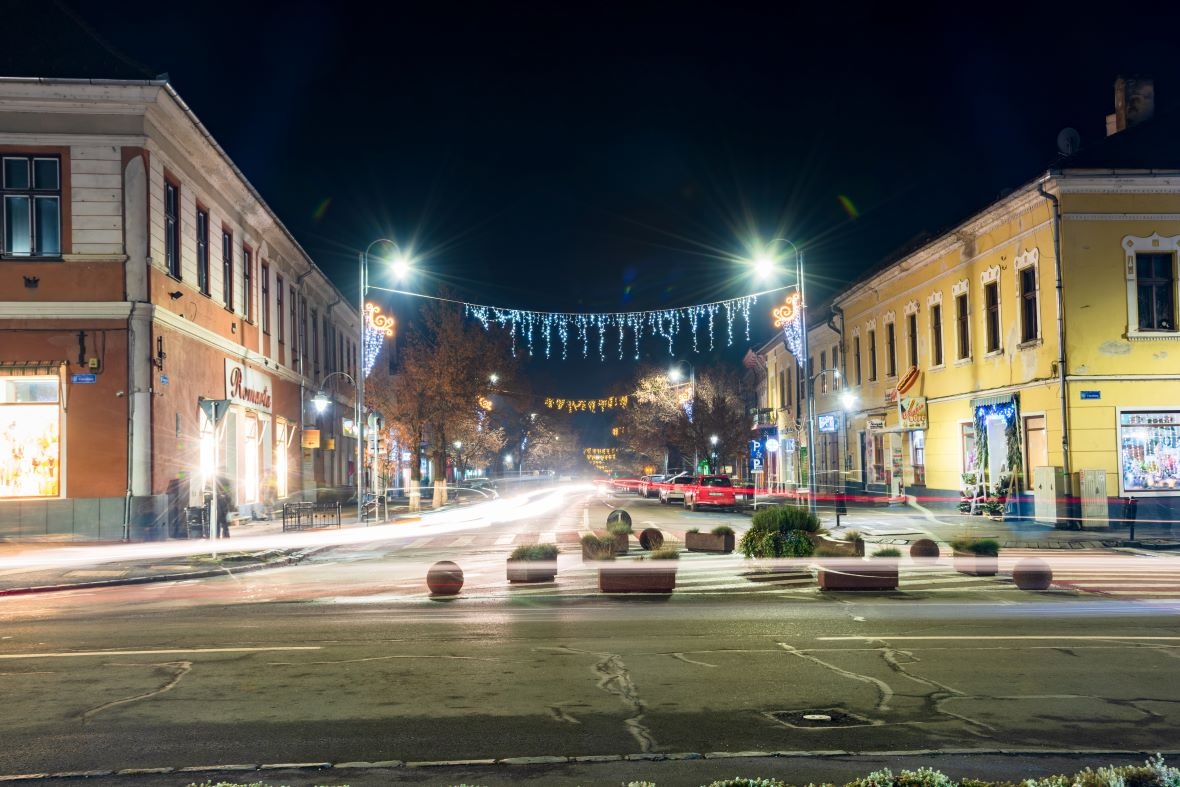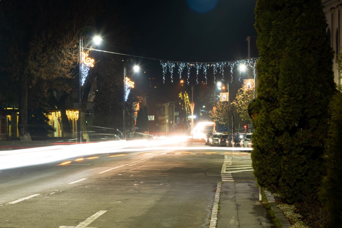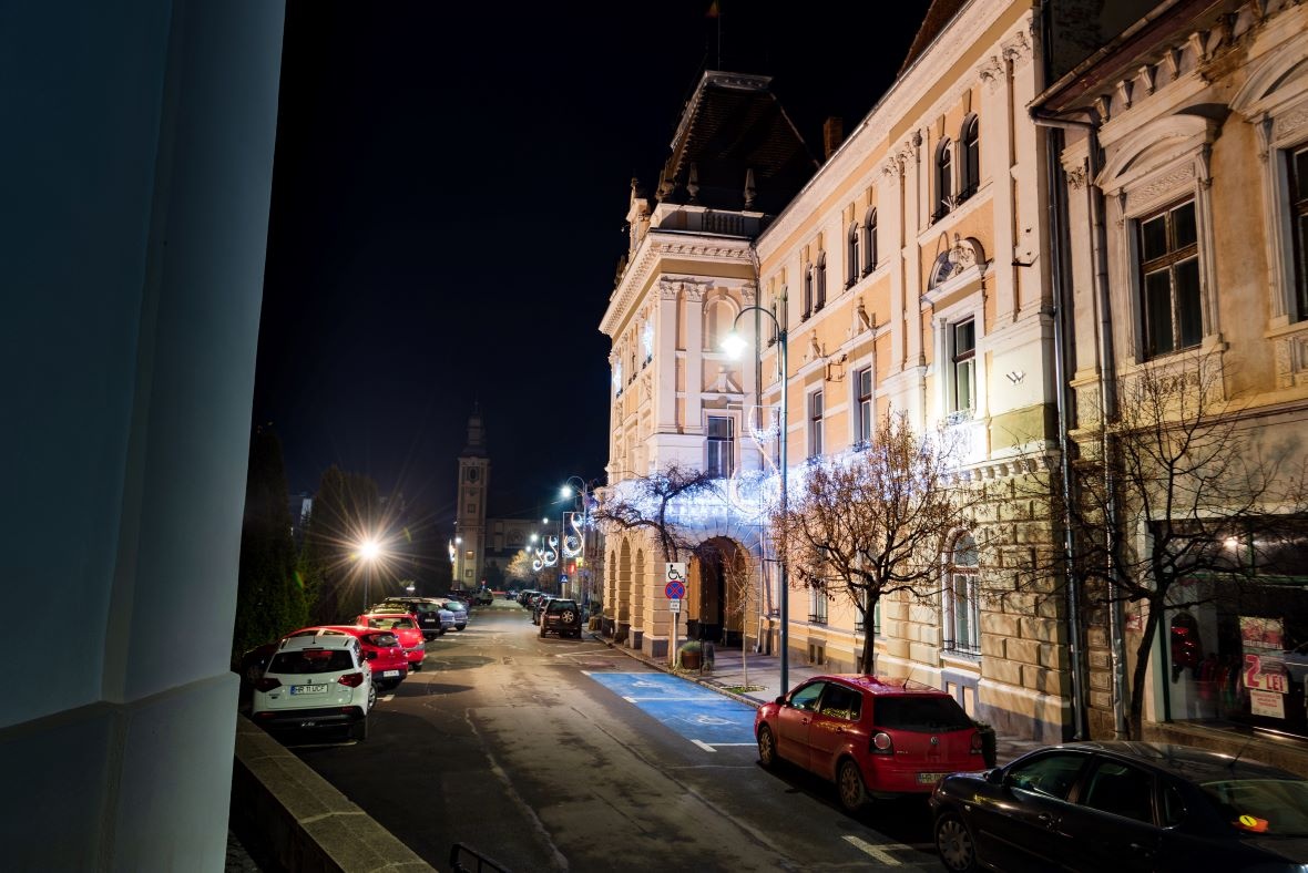 Útközben megcsodáltam a polgármesteri hivatal homlokzatán függő fényfüzéreket.