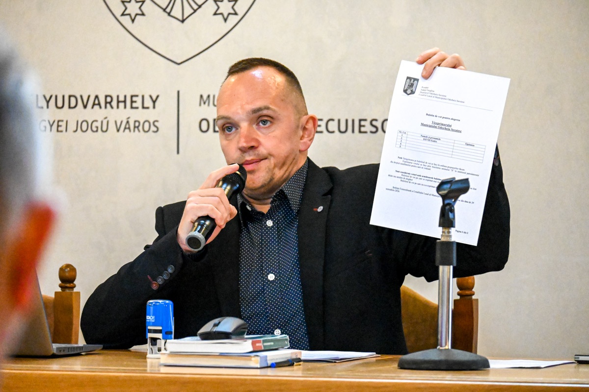Szakács-Paál Istvánnál a mikrofon, gratulál az új képviselőknek, akik letették az esküt. Gondolkodott, kit javasoljon: agilis, proaktív személy, műszaki készségekben is jártas, amikben a polgármester kevésbé érzi kompetensnek magát. Dávid Endrét javasolja. Nincs más javaslat. Venczel nevesítéseket kér a két párt részéről, hogy segítsenek a szavazatszámlálásban. Arros Orsolyát az RMDSZ és Bálint Csongor Attilát az SZP részéről javasolják, Antal-Veimberger-Pálfi Noémi pedig a polgármesteri hivatalt képviseli a szavazóbizottságban.