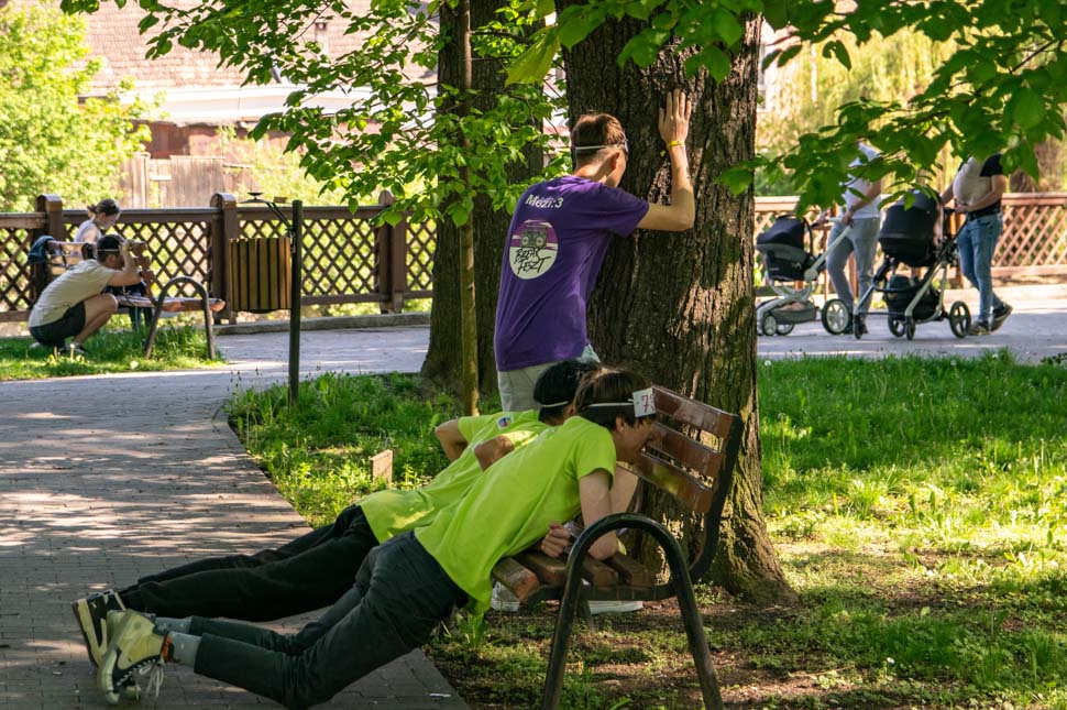 Ezzel párhuzamosan elkezdődött a számháború is a városi parkban, ahol a csapatok, félretéve rivalizálásukat, közösen harcoltak a zászló megszerzéséért. Két nagy csapatba szerveződtek, a játék végén a támadó kék csapat bizonyult eredményesebbnek.