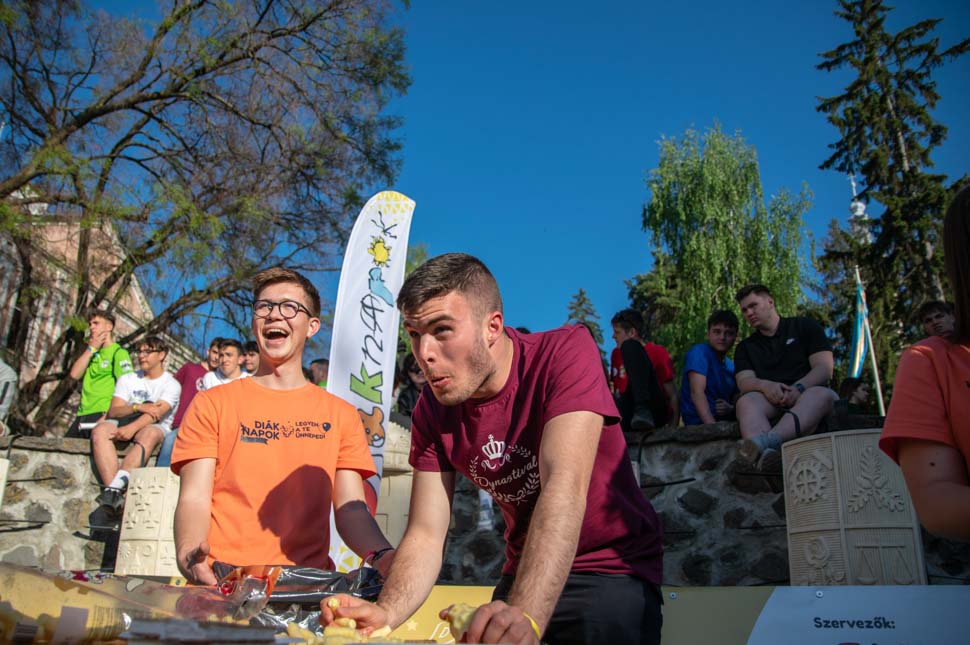 Mielőtt az evő-ivó verseny elkezdődött volna a Márton Áron téren, mi, szervezők megtáncoltattuk a diákpolgármester-jelölteket. Úgy láttuk, a szurkolók lendülete kihatott a csapattársaik sikereire: minden elvárást és az eddigi évek teljesítményeit is felülmúlta az idei evő-ivó verseny. A versenyzők bepótolták az elmúlt két év lemaradását, hiszen rekordot döntöttek.