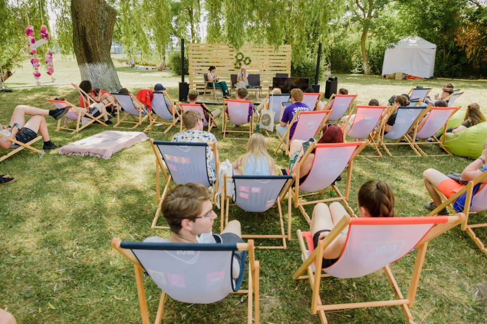 Egy darabig nyugtatta magát a Maros partján ízesített sörrel és harapnivalóval, míg egy önkéntes ismerőse körbevezette a fesztiválon. Nem volt túl nagy kavalkád, kellemesen lehetett keringőzni a nézelődő emberek között, csak éppen eléggé hangzavar volt ahhoz, hogy irritáló legyen. Volt, ki az asztaloknál evett, volt, ki a napernyők alatt iszogatott, dohányzott vagy csak egy babzsákban fetrengett, voltak sorban állók és csak céltalanul lófrálók is, mint ők.