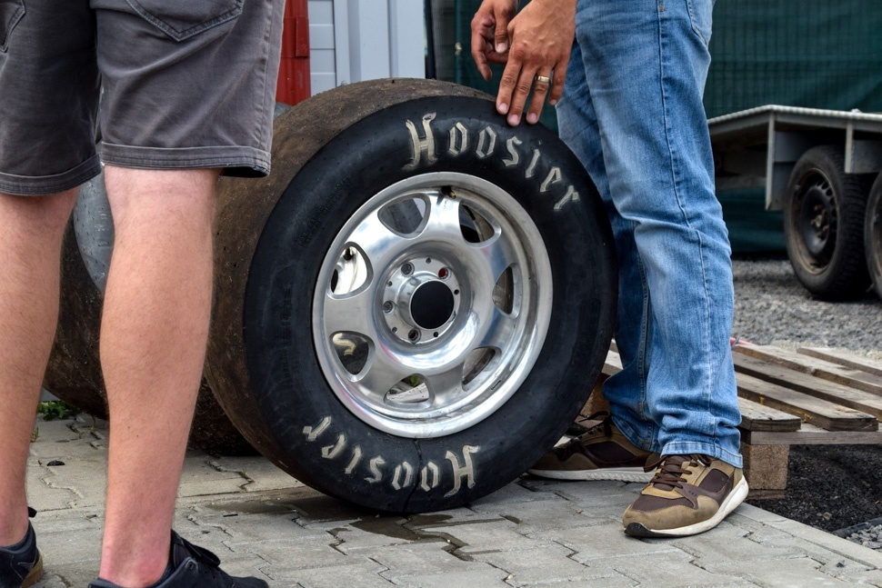 Erre az autóra most nem a gyorsulásra specializált gumik voltak szerelve, de Vargyasi Zoltán megmutatja, hogy azok milyenek. Nagyon puhák, semmi tartás nincs bennünk, nem is lehet kanyarodni velük, vagyis csak nagyon óvatosan, mert a kocsi himbálódzik rajtuk, mintha egy puha szivacson gurulna, meséli.
