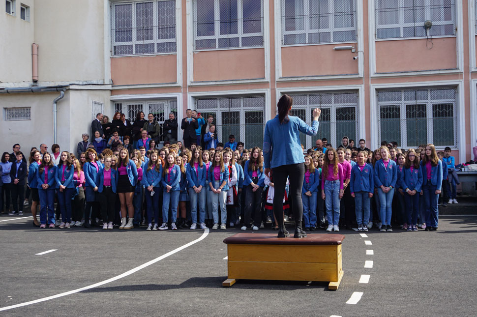 De egy igazi kitartó következik, aki tényleg soha nem adta fel az álmait: a volt diák, Veress Erna, paralimpia úszóbajnok köszöntő beszéde igazán meghatóra sikeredik. Bár az érmeit soha senkinek nem adja, megajándékozni szeretné az iskolát.