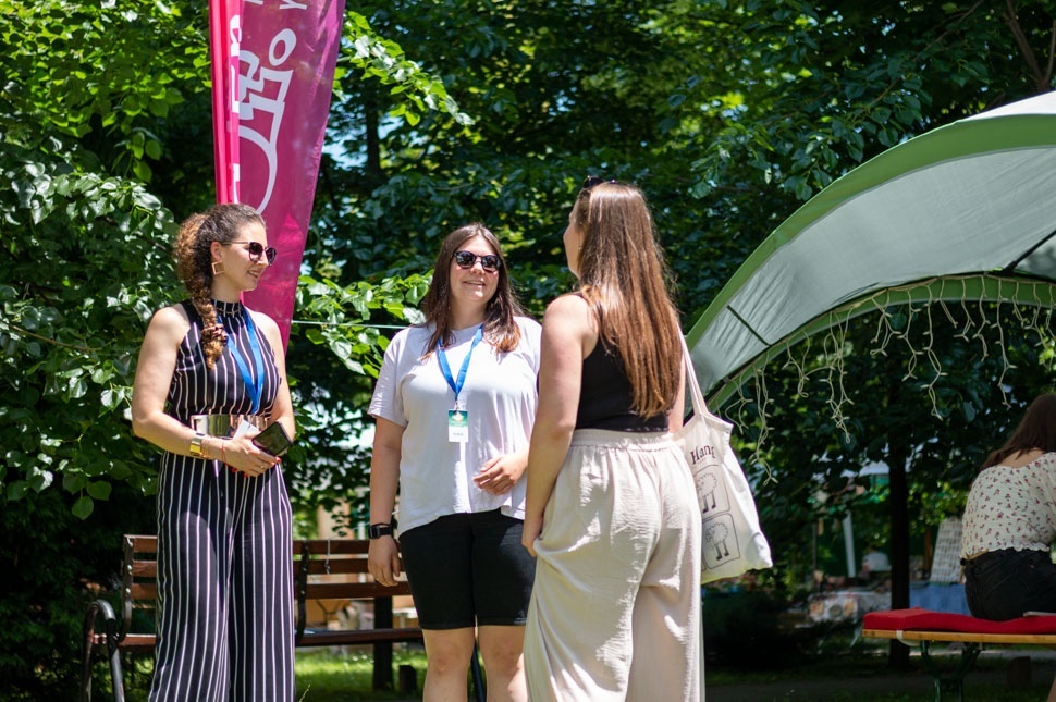 Az első utunk az UFF sátorához vitt, ahol babzsákok, társasjátékok hevertek, a hűsítő árnyékot pihengető fiatalok élvezték érkezésünkkor. Toth Tímea választása nem volt meglepő: „ez a miénk, ezt mi csináljuk”. Most épp két helyen „laknak”, a chill zone-t, amivel az Udvarhely Napokra készültek, egy kis otthonnak tekintik, ahol ők és a résztvevők is meg tudnak egyet szusszani, kényelmesen elhelyezkedve lehet beszélgetni, társasozni. „Eljönnek az érettségiző UFF-osok is a koncertekre, ilyenkor benéznek hozzánk, régi tagok is odaköszönnek, van, aki a gyerekét is hozza, ilyenkor babázunk. Úgyhogy ez egy tökéletes találkozási pont”.