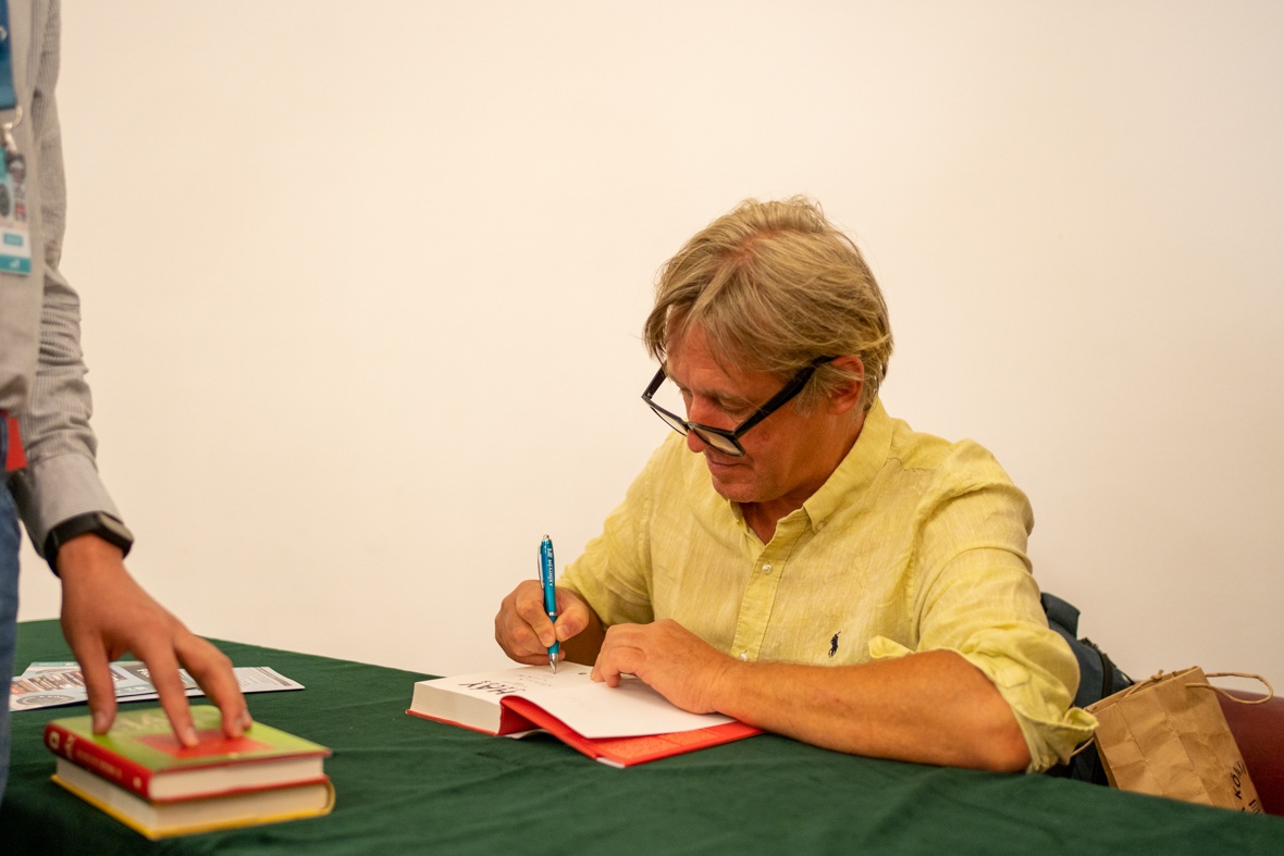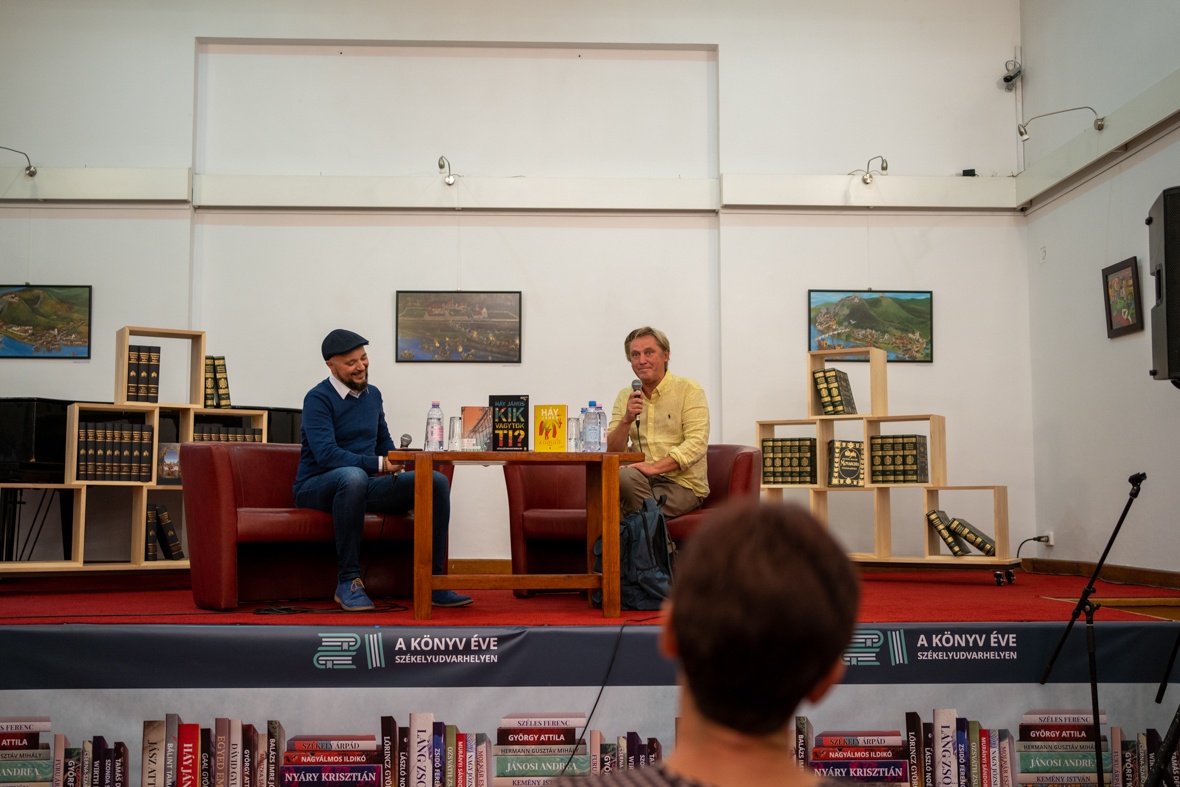 Régészetről, rockzenéről, a magyar faluról, s arról, hogy az író élete csupa nyaralás és szórakozás tudhattunk meg műhelytitkokat Háy János író és Katona Zoltán újságíró kora esti beszélgetéséből a Művelődési Ház Koncerttermében, amit A Könyv Éve Székelyudvarhelyen programsorozat részeként szerveztek meg szombat este.