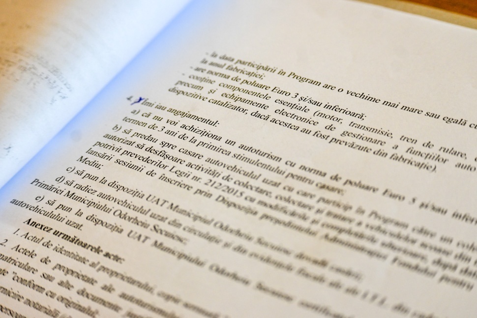 Azaz aláírni a finanszírozási szerződést a gépkocsi-tulajdonsokkal, akik, miután leadják autóikat a roncstelepen és töröltetik azt a közúti és adóügyi nyilvántartásból, megkapják a 3.000 lejes támogatást. Az autótulajdonos a szerződés aláírásával azt is vállalta, hogy az összeg folyósítását követő három éven belül nem vásárol Euro 5-ös és/vagy alacsonyabb szennyezési normájú gépkocsit.
