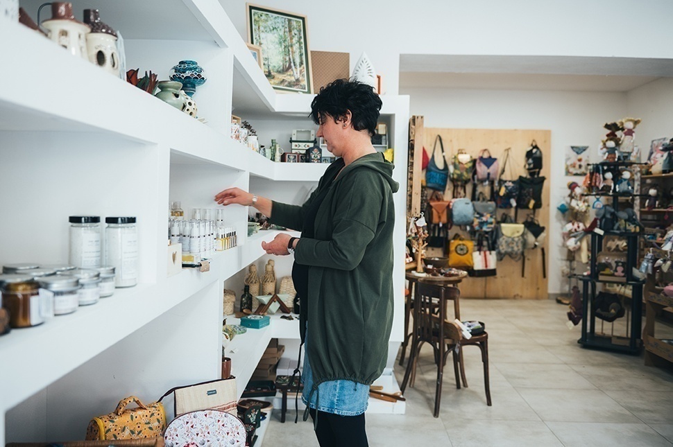 Legszívesebben az összes terméket hazavinné Jakab Judit, a kézművesek boltjának tulajdonosa.