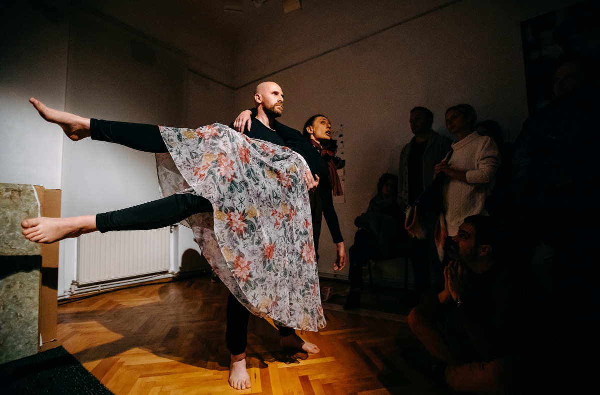 Lőrincz Inez Kiragadásához térünk vissza, ugyanis a fotósorozat Győrfi Katát is megihlette. Írását Pál-Varga Márta adja elő, amit lélegzetvisszafojtva figyelünk a szó szoros értelmében. Előbb azért, mert a színésznő egy kismadárról beszél, az anatómiájáról, hogy mit érez a kis törékeny, aprócska test, „kiszolgáltatott vékonyság”, hogy mélykék hajszálerek a csontok, amelyek a szárnyak lettek volna. Az érzékletes leírást hallva a néző akaratlanul is óvatosabban lélegzik, mintha egy nagyobb szusszanás összetörhetné a fiókát. Aztán azért tartjuk vissza a szuszt, mert „repülni akar a kiszolgáltatott vékonyság”, és azt lessük, vajon Pál-Varga Márta valóban lerepül-e a létráról, aminek szinte a tetején áll.
