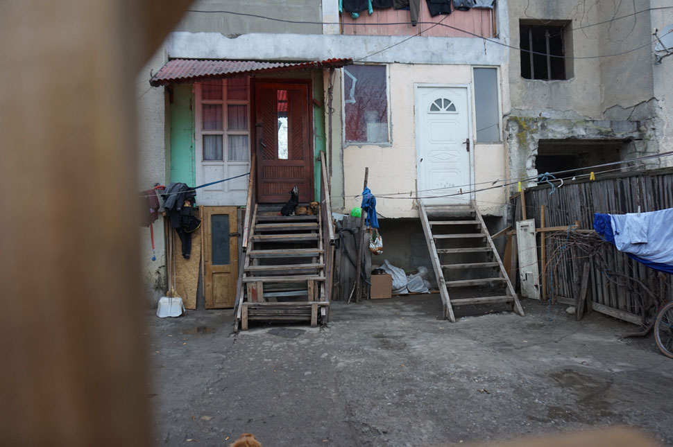 Az idegenek láttán mindenki igyekszik eltakarodni a máskor hangos környékről. Mindenütt lebben a függöny, ahol elhaladunk, s kíváncsi tekintetek követnek. Sok-sok arc villan fel az ablakokban.