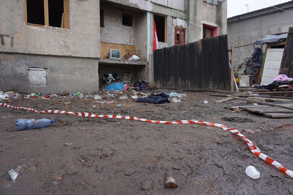 – Ennek a blokknak a háta mögött történt. Meg tetszik látni, szalagok vannak kihúzva. Most már nincsenek rendőrök – igazít útba egy helybéli csóró, amikor a bár előtt a vasárnap esti tömegverekedés helyszínéről kérdezzük. Az ütött-kopott tömbházak között lépkedünk, bokáig ér a sár.