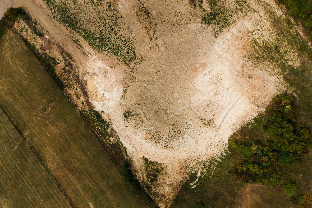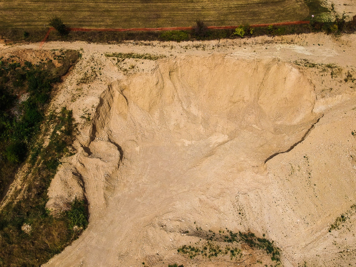 A tegnap készült légi felvételen egy aránylag vékony, de merevnek tűnő, a város irányába mutató pénisz, és egy emberi arc rajzolódik ki a ribizlibánya talaján.