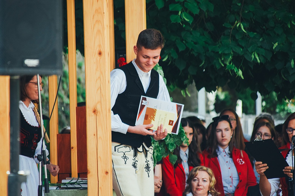 a diákok kivonultak a főépületből és leültek egy fából készült szín alá. Péter Júlia angol szakos tanár kezdte az útravaló csomagolást. Elsőként egy bögre kávét kaptak, és azt a jókívánságot, hogy mindig legyen tele életük csészéje szeretettel.