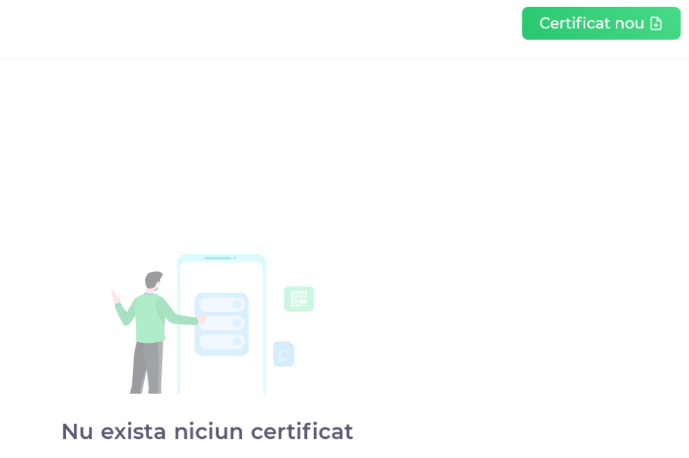 - A román állampolgárok, illetve a román személyazonossági számmal rendelkező külföldi állampolgárok a 'CNP' gombra kattintanak, majd megadják az ott kért személyi adatokat, és kiválasztják a tanúsítvány típusát. A külföldi állampolgároknak az 'útlevél/személyazonossági igazolvány' gombra kell kattintaniuk, majd meg kell adniuk a kért adatokat, és ki kell választaniuk a tanúsítvány típusát.