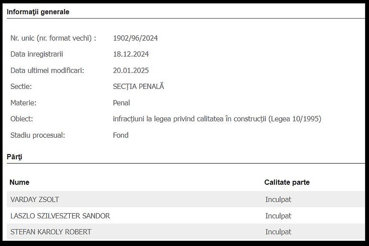 A Hargita megyei Törvényszéken (Tribunalul Harghita) elkezdődött a bentlakásügy pere. Az 1902/96/2024-es bűnügyi dossziét 2024. december 18-án iktatták, pontosan egy évvel a tragédia után.