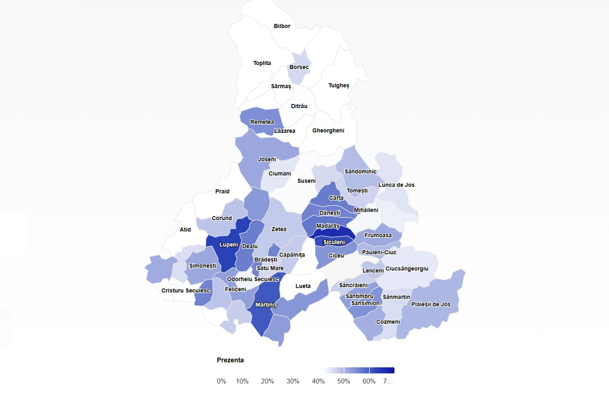 Ha településeket is górcső alá vesszük, azt láthatjuk, hogy Oroszhegy és Farkaslaka község lakóinak már 40 százaléka szavazott, Udvarhely kis híján ugyan, de még a 30 százalékot sem érte el.