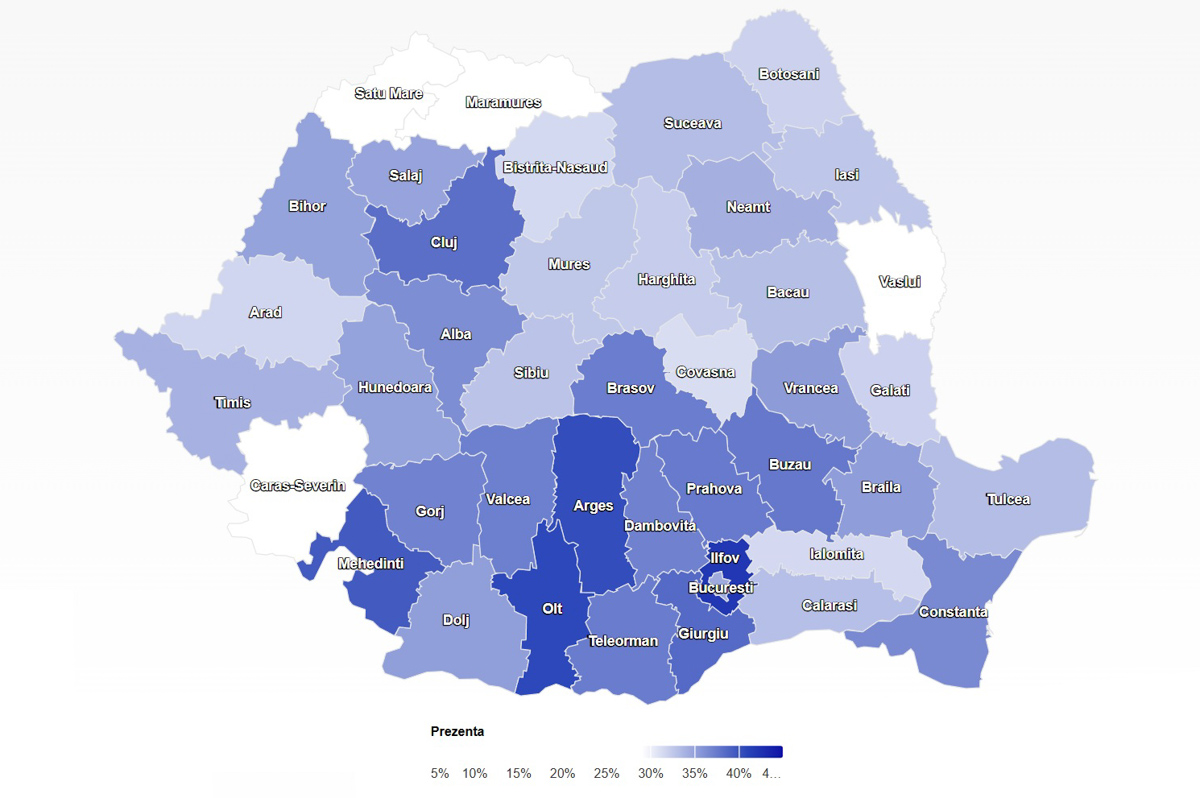 18 órakor többen szavaztak, mint 5 évvel korábban, ugyaneddig az időpontig. A részvétel 46 százalékon is túl van már, ehhez képest Hargita megye alig lépte át a 40 százalékos részvételi arányt. A legnagyobb szavazati kedv továbbra is Ilfov megyében van, egyedüliként van túl az 50 százalékos arányon a megyék közül.
