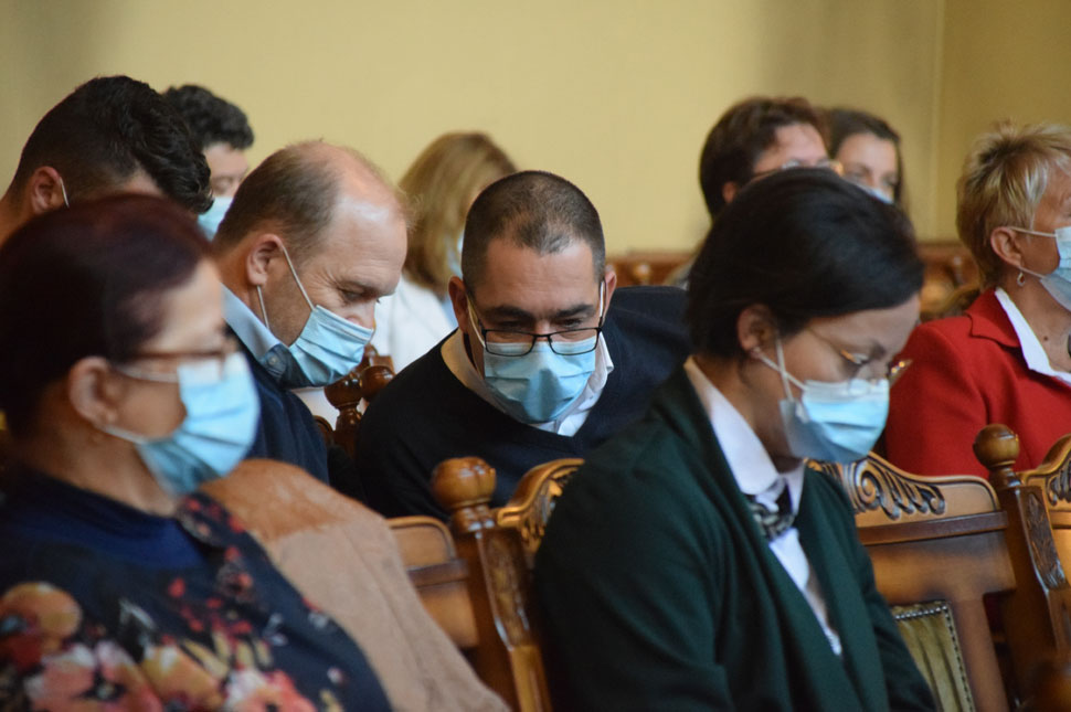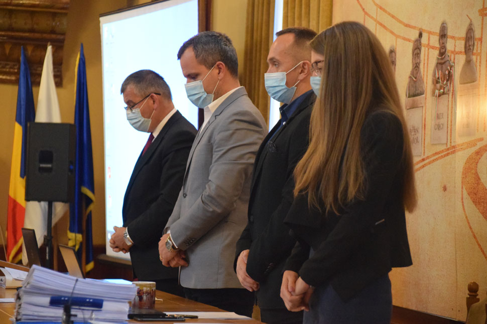 Benedek Árpád Csaba egy perc néma csendet kér az elhunyt kollégáért, Simó Árpád volt önkormányzati képviselőért. Mindenki feláll, még ha nem is egy kerek percig. Benedek köszönömje töri meg a csendet.