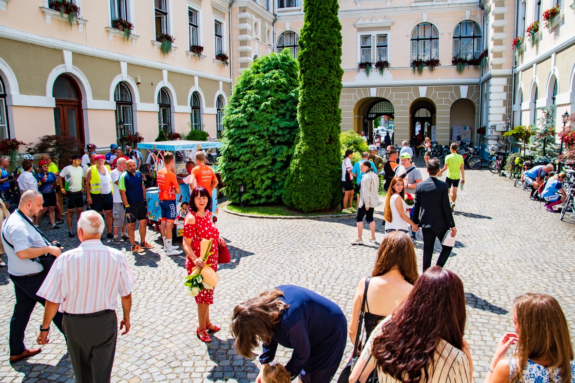 Az erdélyi csapat háromszéki tagjai összesen 837 kilométert fognak tekerni, naponta körülbelül 100-at, a később csatlakozók nyilván kevesebbet. A bethlenfalvi bejáratnál fogadta őket a polgármesteri hivatal küldöttsége, Pálfi Kinga alpolgármesterrel az élen, hogy aztán a városháza udvarán felállított ad-hoc svédasztalról frissüljenek a biciklisek. Ez volt a második, és egyben az utolsó nehéz napjuk, de még a kaptatókkal tarkított tájak után sem gondolják úgy, hogy nem lehet végig tekerni ezt a csekély távot. Ebédidőre értek a frissítőpontra, ahol rögtön mindenki nekilátott a gyümölcsöknek meg a víznek, ideje sem volt elmondani a hivatal alkalmazottjának, hogy még fagyi is van.