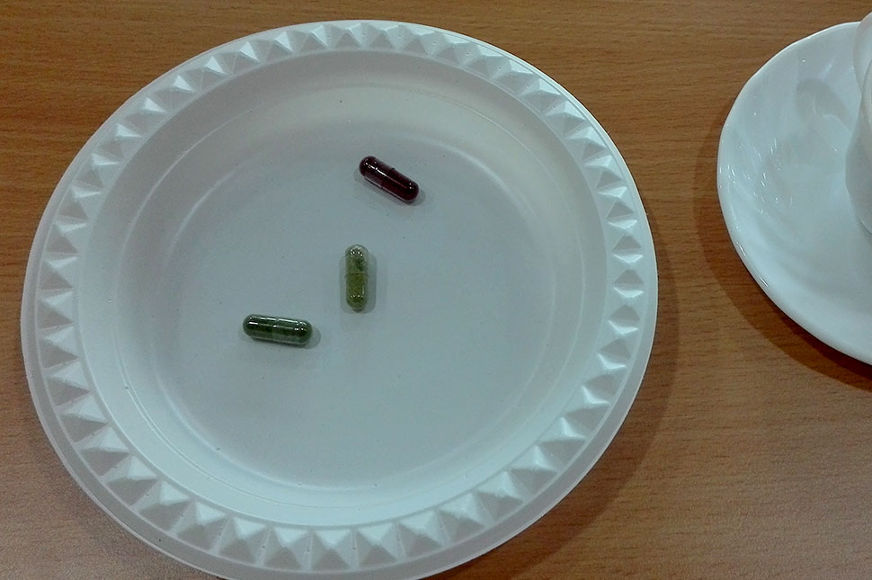 Reggeli gyanánt, az előadáshoz igen találó módon, Szabó Bilibók Attila, a Transylvanian Miracle Kft. tulajdonosa egy piros, egy világos- és egy sötétzöld színű kapszulát etetett meg a résztvevőkkel.