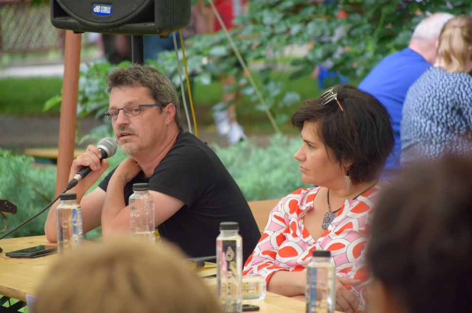 Az asztalnál a Heti Hírmondótól Geréb László, a Székelyhontól Kozán István, a Hargita Népétől Lőrincz Csaba Levente, az Udvarhelyi Hírportáltól Pál Edit Éva, a Székely Citromtól Szőke László ültek. Arra, hogy ne kalandozzanak el és vitákba ne keveredjenek, Ilyés Szabolcs, az ErGo Egyesület elnöke ügyelt. Első körben arra kérte egyenként a HBC sátrában a meghívottakat, hogy mindenki nagyon röviden mutatkozzon be, és mondja el azt, hogy szerinte kinek szól az ő sajtóterméke.