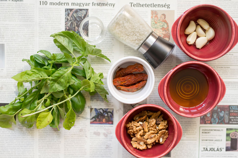 Amikor fáradtan érkezel a műszak után, és tudod, hogy nincs otthon semmi, éppen jó lesz. Mivel az alapunkból kihagytuk a fenyőmagot, utólag tehetünk bele, de használhatunk diót is. Ezt aztán kenheted a sajtodra, a szendvicsedbe, a sültcsirkédre, de készíthetsz egy jó pastat is belőle. Egyszerűen rákened, vagy Gombóc Artúr módjára jöhetnek az ötletek: pirított mogyoróval, dióval, ha frissességet keresünk, egy fél citrom levével, de összezúzhatjuk krémsajttal, ricottával, mascarponeval, tejszínnel, sőt főzhetünk egy besamelmártást is hozzá és így tovább.