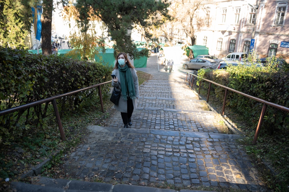 A járvány miatt hibrid interjút készítünk, ami abból áll, hogy az interjúalany és a fotós a helyszínen tartózkodik, én pedig karanténból, a telefon képernyőjén élő adásban tartok velük. Így legalább Mari szemében látom a várost, a sajátoméban már úgyis ismerem.