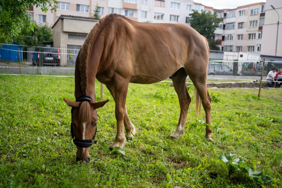Ő itt Viktor, aki barátjával, Vidámmal együtt várta, hogy a gyerekek megcsodálják, megsimogassák