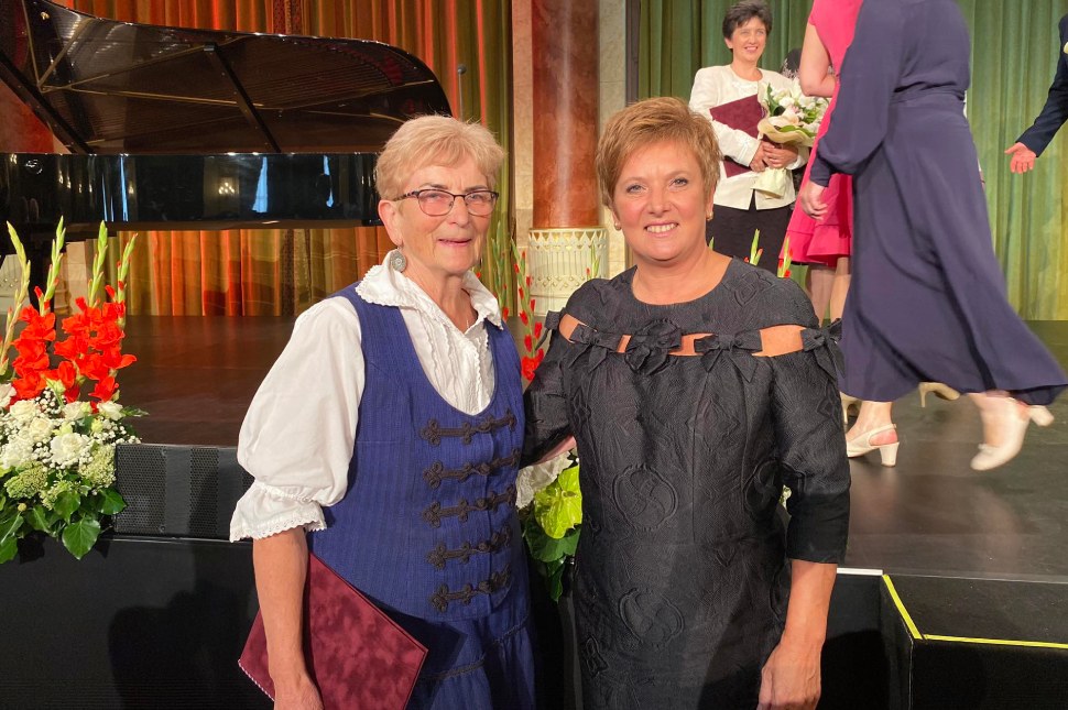 – A 35 éves közösségi munkámért kaptam. Ilyen nagy állami kitüntetésben eddig még nem részesültem. El is felejtettem – jó, hogy említed –, hogy valóságos díjesőt tudok felsorolni, ha jobban visszaemlékezem: 2004-ben Szász Jenő akkori polgármester ismerte el a népművészeti értékeink megőrzéséért, hagyományainkhoz való kötődésért végzett munkámat, majd 2006-ban a közösségi és kulturális tevékenységemért és a Míves Emberek Sokadalma kitartó, lelkes szervezéséért. 2006 óta Máréfalváért-díjjal is rendelkezem a Máréfalvi Mirákulum nevű kulturális rendezvényen végzett közösségszervező munkáért. 2019-ben az RMDSZ Nőszervezete elismerésben részesített a közösségszervező tevékenységért. Az elismerésekben fontos volt számomra, hogy a laudációt Kovács Piroska és Szabó (Miklós) Zsuzsánna írta és olvasta fel. Ezeket nem felejtem el – sorolja arra a kérdésre, hogy még milyen kitüntetésekkel, díjakkal rendelkezik.