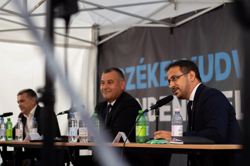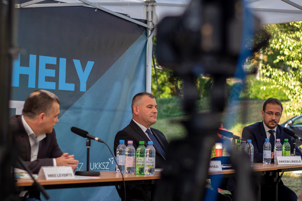 Az RMDSZ jelöltje röviden gratulál a szervezőknek, szerinte minden disputa a város javát szolgálja, majd Mikének szegezi az első kérdést: