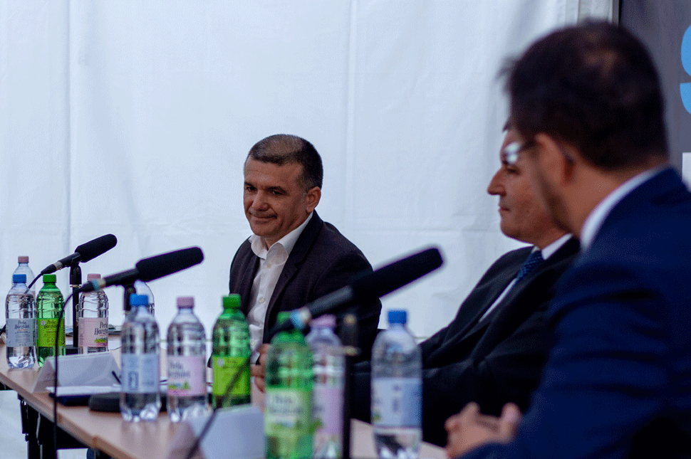 Biró Csaba, a POLgármester kabinetvezetője az első kérdező a közönségből.