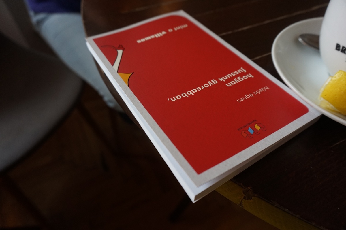 Most szerzőként van jelen. Lágyan beszél, de határozott, és nyitott a kényesebb kérdésekre is, miközben egész lénye tiszteletet követel. Én is teát rendelek, bodzás-citromosat, Ágnes fülönfüggőin is kis csészék lógnak, így van ez rendjén: a jó beszélgetések és könyvek mellé tea dukál.