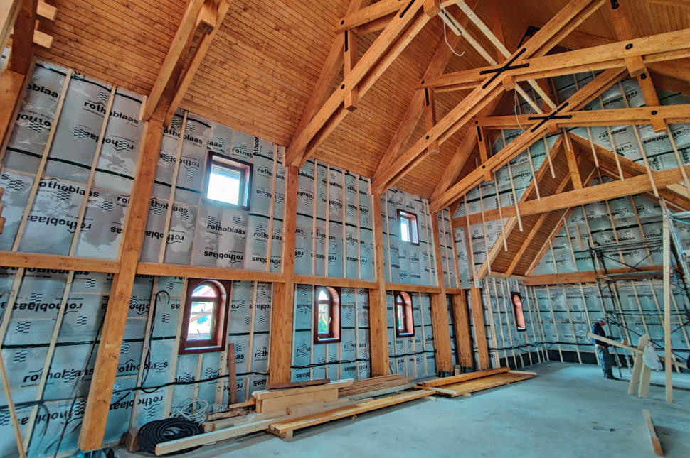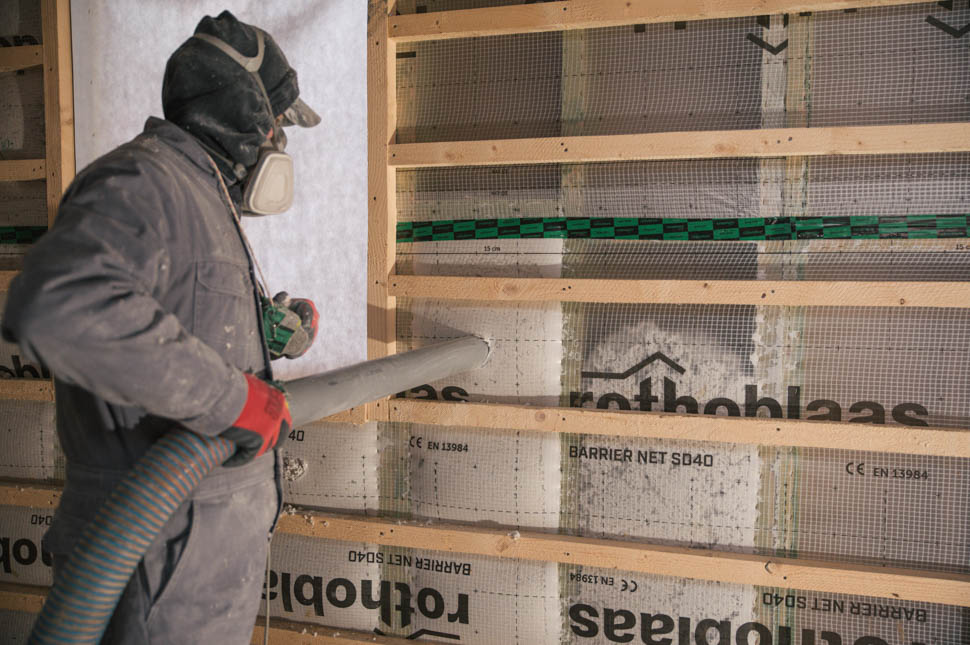 Ha ez megvan, fóliáznak, és egy befúvókészülékkel jutattják be az anyagot résmentesen az üregekbe egy tíz centiméter átmérőjű lyukon keresztül, majd ezt a lyukat betapasztják egy magas minőségű ragasztóval. 120–140 négyzetméteres ház esetében fóliázással és befúvással együtt két napig tart nagyjából a szigetelés. Amennyiben manzárdot építtet valaki, az valamivel körülményesebb, ugyanebben a méretben három nap alatt készül el.