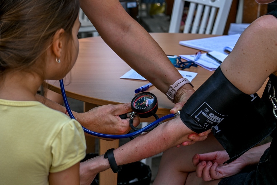 Nekem egy segítőkész leányka személyében kis asszisztensem is kerül, aki örömmel bontja fel a fertőtlenítő kendőcskét, majd lelkiismeretesen pumpálja is vérnyomásmérőt. „Orvos szeretnél lenni?”, kérdem, mire ő kikerekedett szemekkel, nagyon határozottan bólogat.