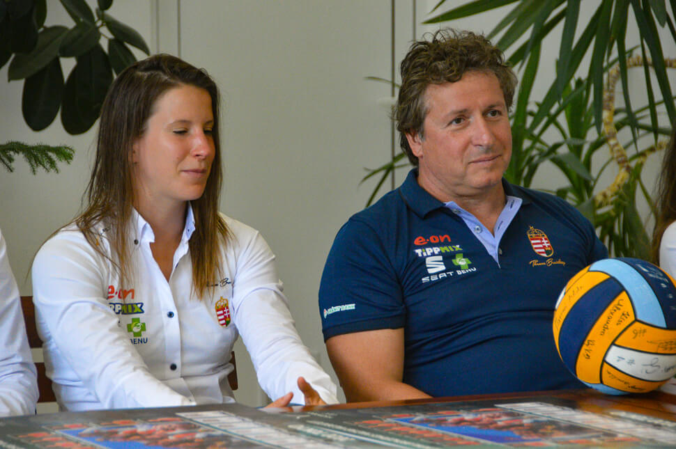 Nagyon sűrű a lányok programja, de azért néhány szóra sikerül elcsípni a szövetségi kapitányt, Bíró Attilát, és Keszthelyi Ritát, a válogatott csapatkapitányát, aki Tenerifére, a világliga európai döntőjére még nem tartott a csapattal egészségügyi problémák miatt, de elmondása szerint most teljesen egészségesnek érzi magát.