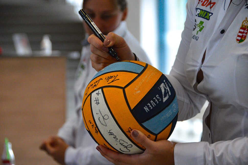 a magyar női vízilabda válogatott tagjaival.