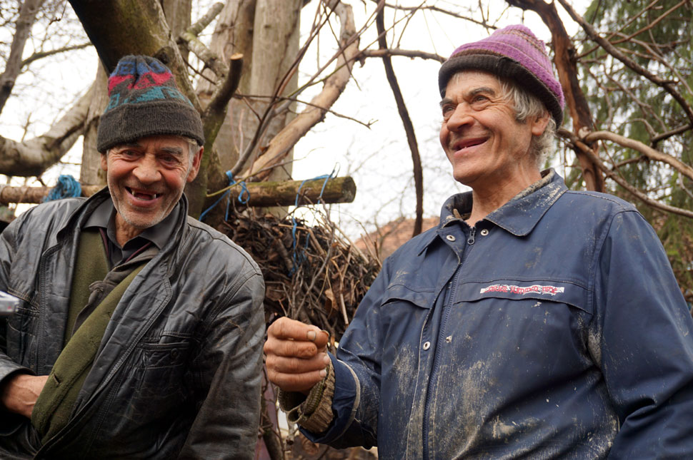 – Ez az alap, minden reggel ezzel indítjuk a napot, mézet és diót eszünk. Van, amikor egy kicsi házi bort is iszunk, amit kakassal folytunk le. Fő táplálékunk a pityóka, amit gőzölve szeretünk a legjobban. Ezen a télen két zsák pityókát ettünk meg, mind mit termeltük. Ha magad jól táplálod, akkor van erő. Olyan ételt kell enni, ami a testet építi. Boltban vásárolt savanyúlevekkel ne foglalkozzunk, inkább igyunk házilag készített italokat. A vegyszerezett étkektől fáj a fejünk később – mondja Sándor, aki látszólag otthonosabban mozog a képzeletbeli konyhájukban.
