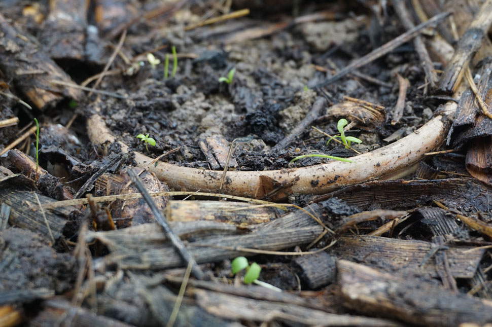 Elhaladunk a faraktár nevezetű építmény mellett, majd egyesesen egy nejlonnal borított kunyhócskához érkezünk meg. A hozzávetőleg 2x2 méter alapterületű “fóliaház” tele van pakolva ganéval, a tetején zöldell pár paradicsom palánta.
