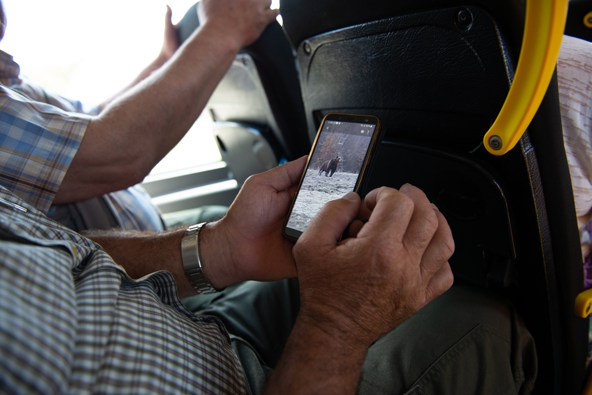 „Ennyien a sok medvét nem kergetjük el!”– néz szét a kisbuszon egy utas, úgy tűnik, ők sokkal inkább azért vannak itt, hogy lényegesen kevesebb legyen a medve a térségünkben. Meg azért, hogy megosszák egymással a medvés történeteiket, alig érünk ki a városból, már előkerülnek a telefonok és a macis képek.