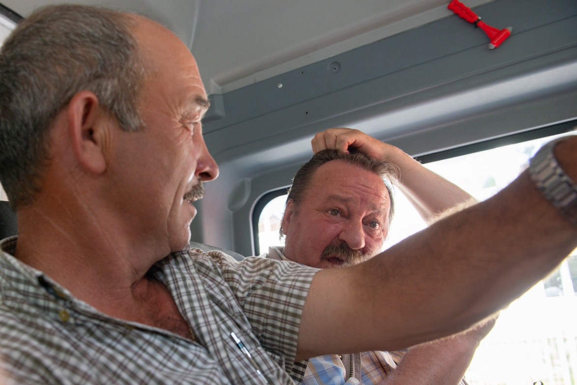 A Márton Áron téren gyülekezik kedd délelőtt az Udvarhely környéki tüntetőcsapat, főleg gazdák és vadászok. Kíváncsiak vagyunk, mi zavarja ezeket az embereket, mi az álláspontjuk. Azt már tudjuk, hogy Csíkszeredába indulnak tüntetni, de hogy pontosan miért, az már kevésbé tiszta. Kicsit a felállás is furcsa: a hatalmon lévők és döntéseik ellen szokás tüntetni, nem pedig mellettük.
