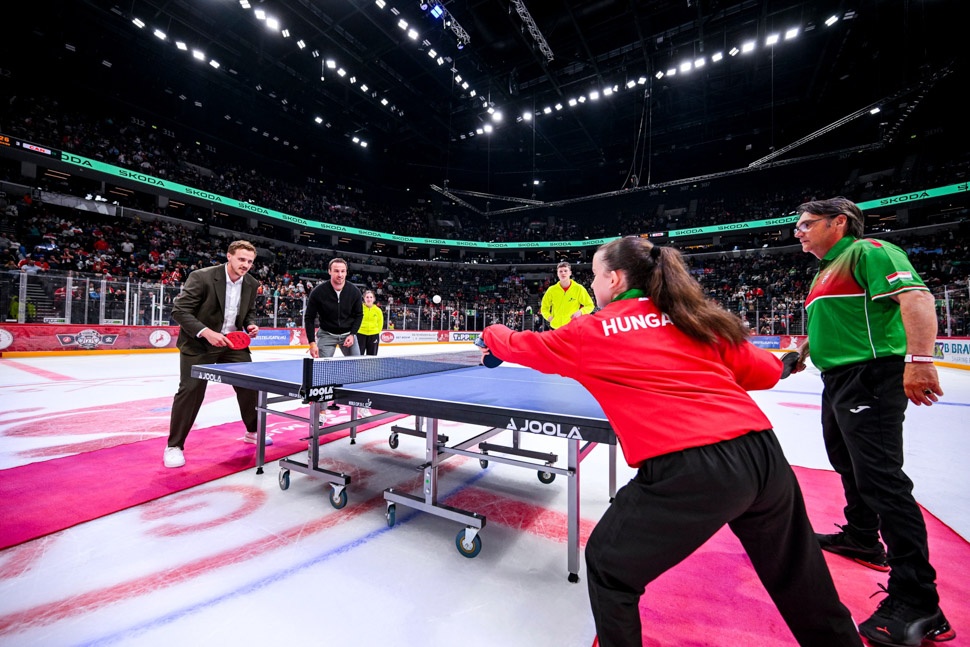 A második szünetben a 100 éves Magyar Asztalitenisz Szövetséget köszöntve Nagy Gergő és Kóger Dániel a jégen ütögetett a 11 éves, magyar és európai ranglistavezető (idősebb korosztályban is) Fazekas Lizettel és Kreisz Tibor világbajnok asztaliteniszezővel, bizonyítva, hogy pingpongozni bárhol lehet. Eközben Jónyer Pistáék pedig a közönséget bombázták a celluloidot felváltó ABS labdákkal.