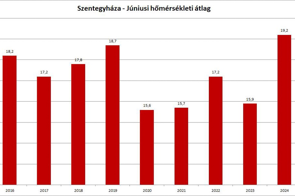 Már a júniusi átlag is lepipálta az előző éveket a Szentegyházi meteo állomás Facebook-bejegyzése szerint, hiszen a legmelegebb júniusi hónap volt a 2016-2024-es intervallumban. Csak egy kicsivel előzte meg 2019-et, de megelőzte – áll a bejegyzésben.