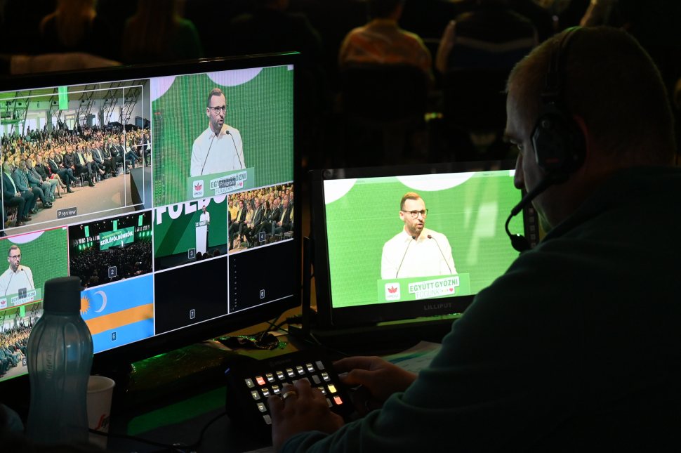 Kakassy Norbert és Dávid Endre a mozgósító gála házigazdái. A független sajtó a háttérben figyelmesen tanulja az (alá)kérdezés szakmáját.