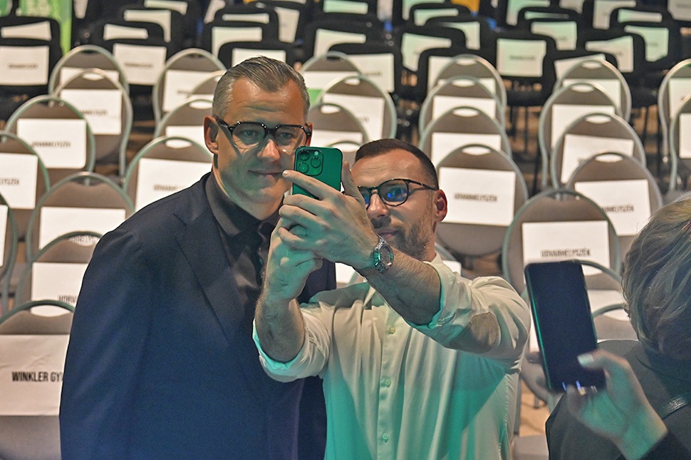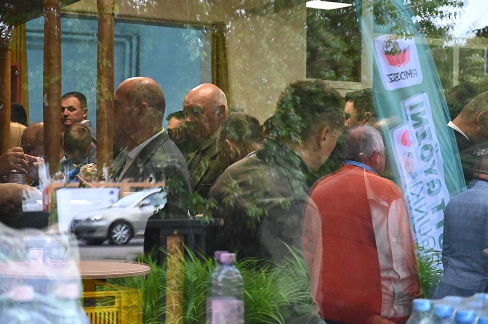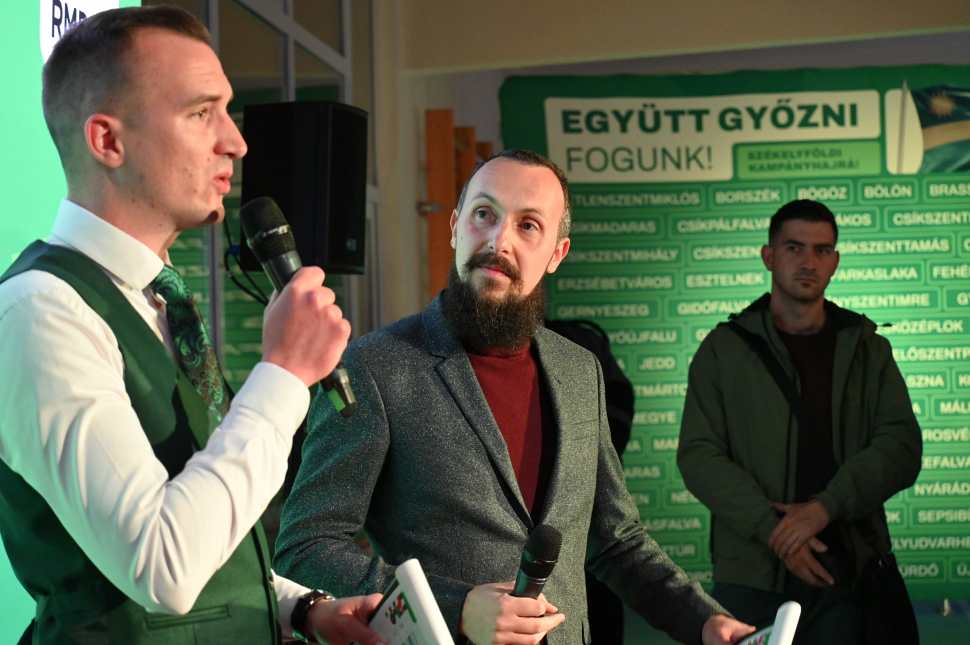 Az épületbe tömött sor kígyózott befelé, lábuk alatt vörös szőnyeg. A bejárattal szemben Kakassy Norbert, az udvarhelyi RMDSZ ügyvezető elnöke és Dávid Endre RMDSZ-es önkormányzati képviselő némi szerepzavarral interjúztatta az érkező politikusokat. Érkezésünkkor épp Antal Lóránt szenátor beszélt arról, hogy az LGT Nem adom fel című dala (javítva 2024. 05. 14-én, korábban egy téves sort írtunk) milyen jól konvertálható az RMDSZ idei kampányüzeneteként. Barti Tihamér is szóhoz jutott, Tánczos Barna a medvekérdés kapcsán Ursula von der Leyenről mondott egy farkasos mesét, és Frunda Csengét is hallhattuk gyökeresen eltérően beszélni, mint nemrég apukája a rádióban. De ez utóbbi csak pletyka, nem kell odafigyelni rá.